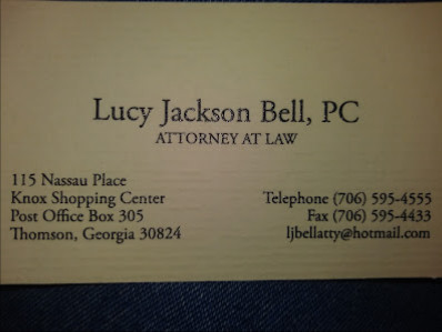 Lucy Jackson Bell is a prestigious legal professional operating in Thomson, Georgia. Specializing in criminal justice, she has earned a notable reputation for her expertise and dedication to her clients' needs. With a physical address at 115 Nassau Pl, Thomson, GA 30824, United States, and a phone number available at 706-595-4555, clients can easily reach out for assistance.